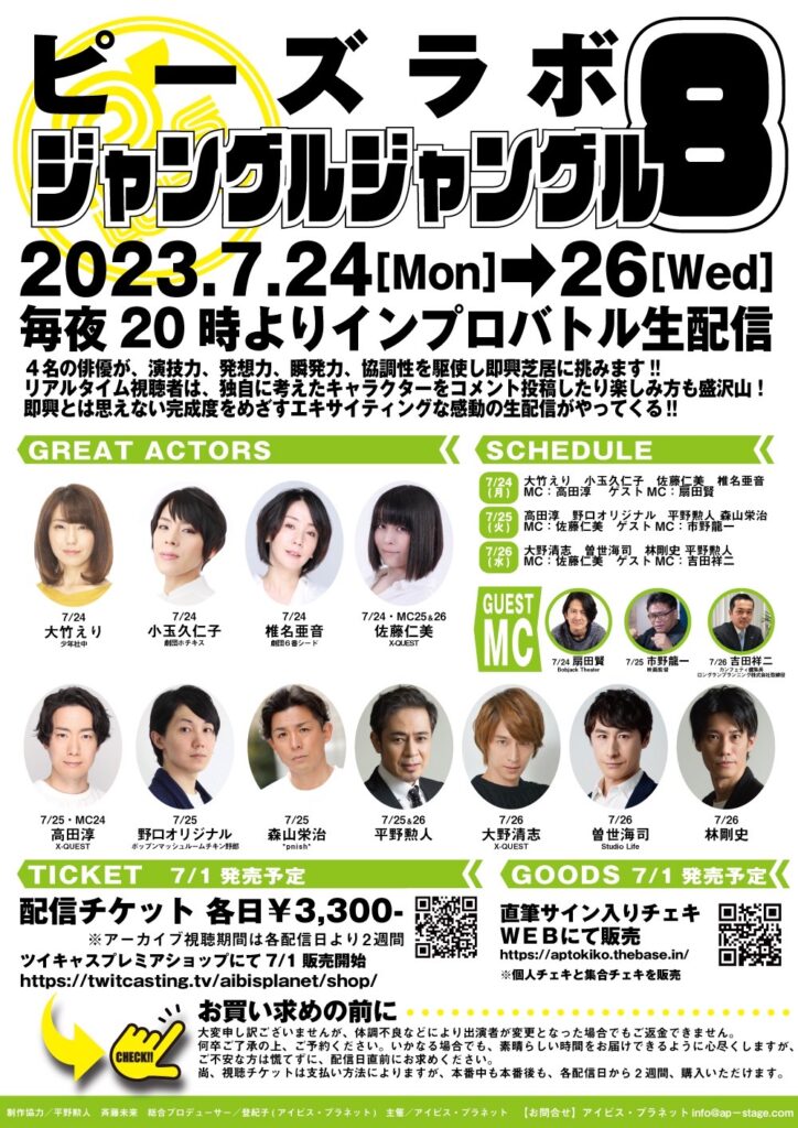 ピーズラボ『ジャングルジャングル8』に出演します♪